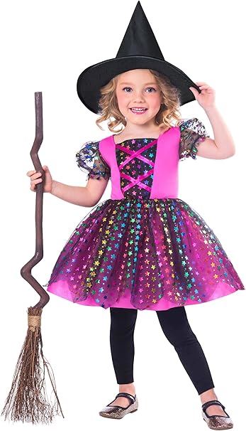 Package includes 1 pc of Witch Costume Get Color Crazy with our Colorful Rainbow Witch Costume! This bright Witch Costume features a dress with different rainbow colored stars all over. It also comes with a black witch hat with to complete the costume. Dress your baby with a Colorful Rainbow Witch Costume. Whether for halloween, birthday party or if you just want to see your baby in a cute costume. This costume comes with the Dress and a Hat for a complete and ready to wear set..